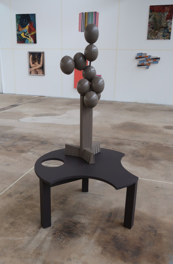 L’exposition 100 artistes + 100 œuvres d’art ≠ 400m2 d’espace d’exposition, conçue par la commissaire Gerda Maise en fin d’année, présente 73 œuvres de 73 artistes français, suisses et allemands. Les artistes sélectionnés ont eu la possibilité de placer librement l’œuvre de leur choix dans l’un des 100 emplacements proposés, un véritable Salon trinational et une expérience visuelle multiforme de l’art contemporain.