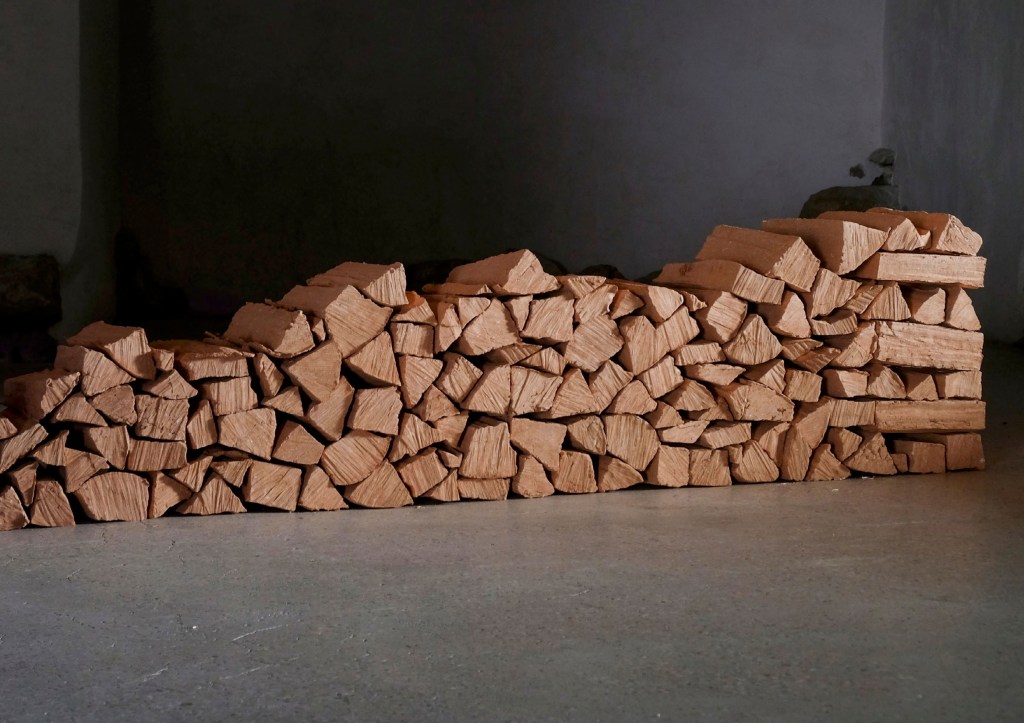 Die Arbeit ist die Ausstellung. Sie ist dynamisch und entwickelt sich über 4 Wochen. Zur Eröffnung ist ein Lager mit dem Ausgangsmaterial im Raum zu sehen. Es folgen 3 Produktionseinheiten, die unter der Woche stattfinden. Die Produktion wird durch die Öffnungszeiten am Wochenende unterbrochen und es finden Veranstaltungen statt. Die Ausstellung ist ephemer, dabei geht es nicht um eine definitive Form. Die Installation ist nur während der Ausstellungszeit erlebbar.